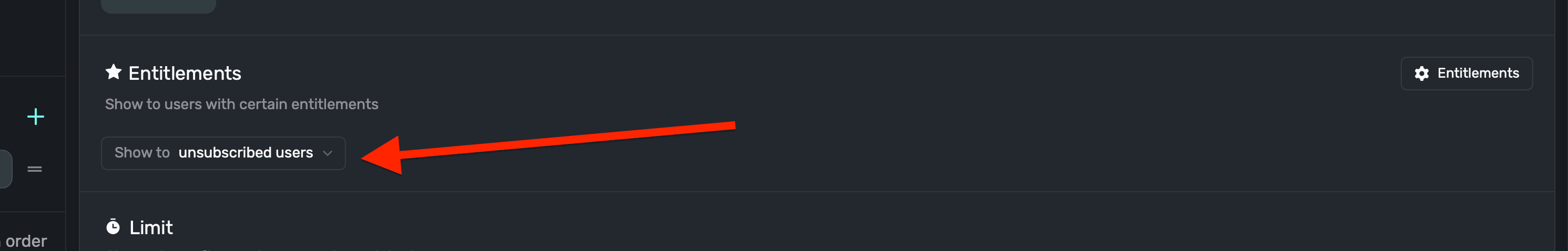 To set a limit for an audience, click the + Add Limit button — located below the entitlements section: