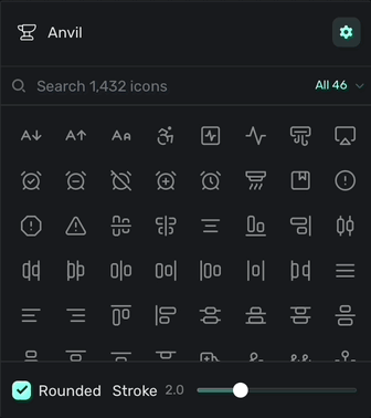 • Icon: Superwall has over 1,000 searchable icons to available, along with the ability to edit their weight and color. You can browse them by category by clicking on the right hand side:
