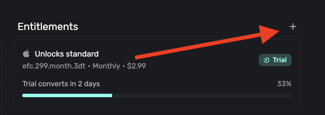 You can manually grant a user any entitlement your app offers. This is useful for activating pro features for someone, handling support issues, and more.